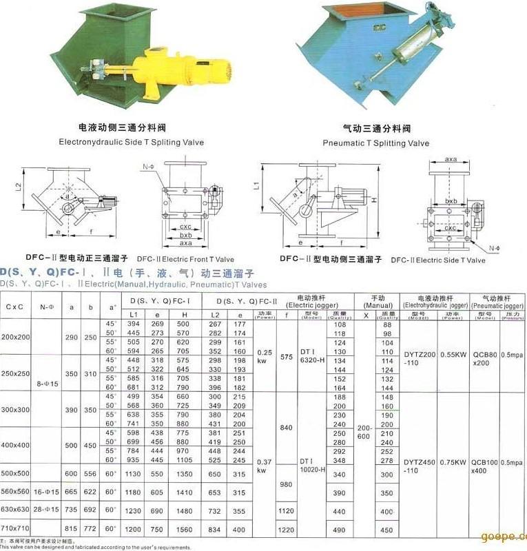 三通分料器別名三通卸灰閥。三通分料器有電液動,電動,氣動,手動等幾種啟動方式,所以又叫電液動三通分料器,電動三通分料器,氣動三通分料器,手動三通分料器??梢灾苯訉⑸喜糠ㄌm接在膠帶機頭部漏斗下或其它設備下料接口處,其一般用于在堆比重小于等于2.8t/m、且磨琢性較大、工作環(huán)境惡劣的條件下??紤]到其結(jié)構(gòu)尺寸大、重量大(耐磨襯板較厚),上部法蘭無法承受自身重量,使用須根據(jù)實際情況另加支承。